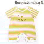 オーガニックコットンヒヨコのイエローボーダー半袖ロンパース