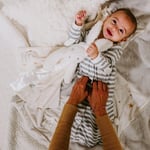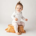 オーガニックコットン首元フリル長袖ベビーロンパース